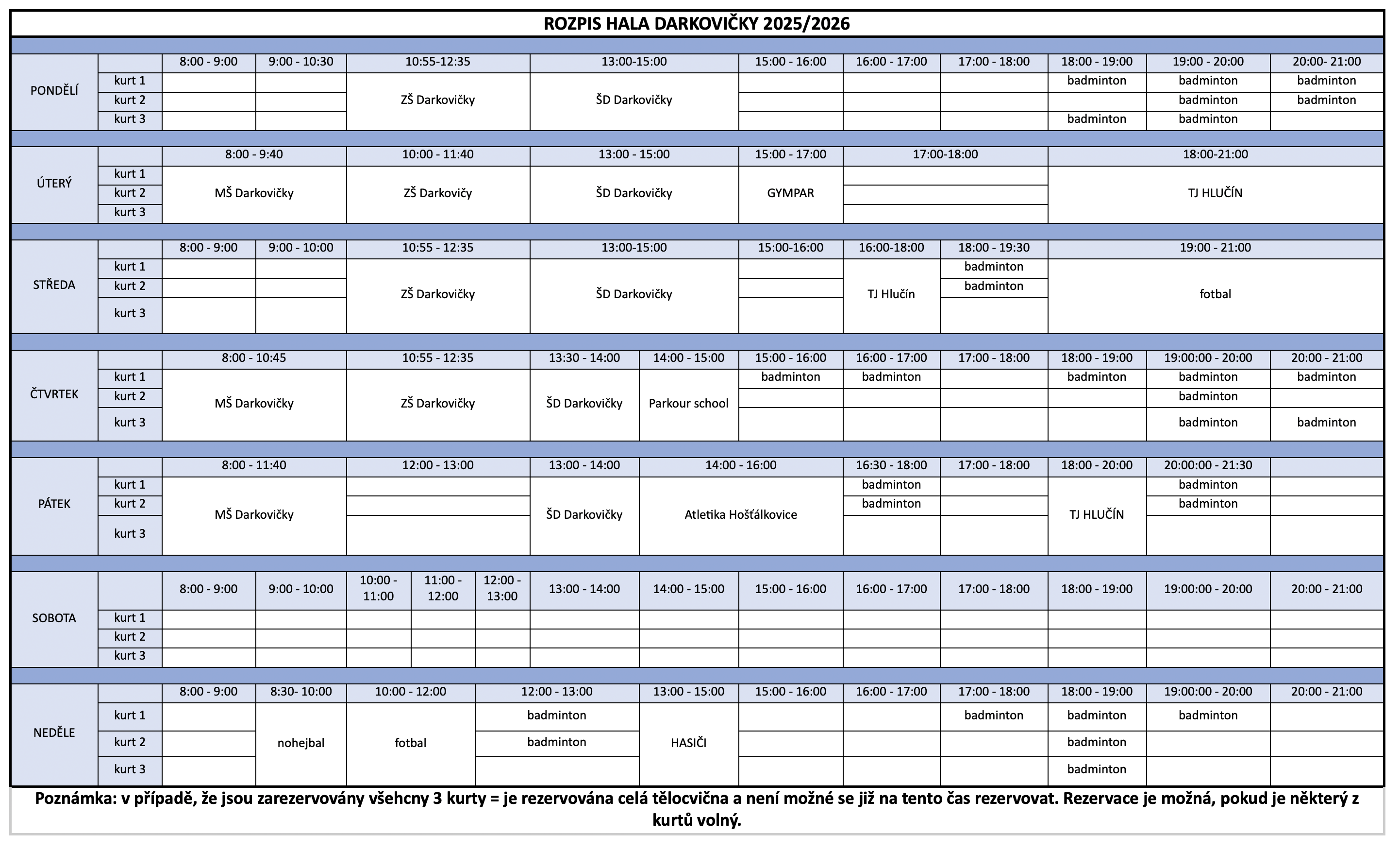Objednávky na tel. čísle: (+420) 602 417 975 nebo na emailu: hala.darkovicky@sak-hlucin.cz