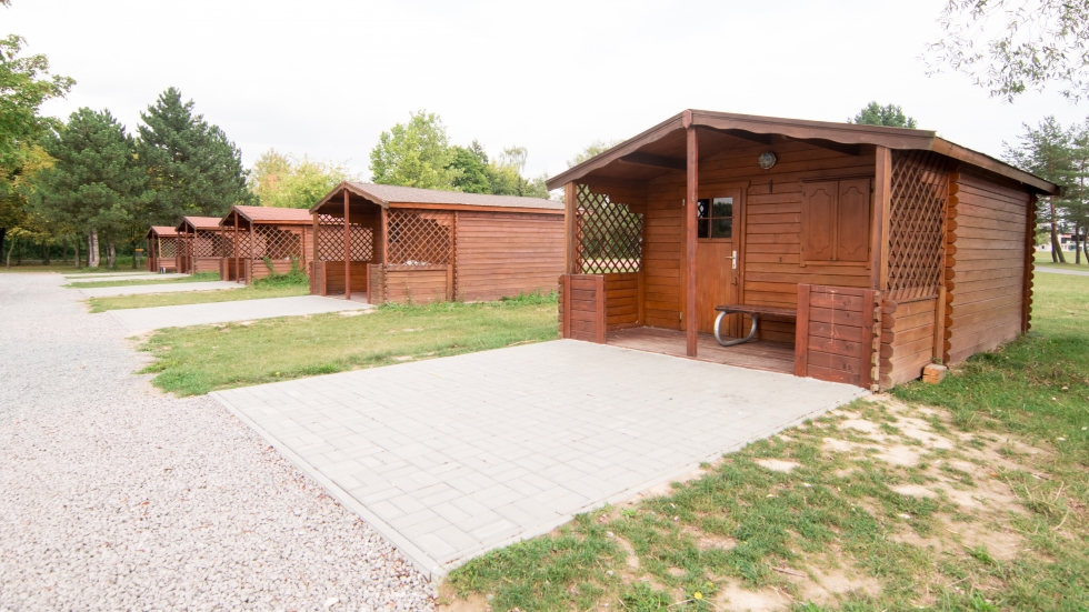 - 10 chatek po 4 lůžkách vč. základního vybavení (lednice, plastový stůl, 4 židle, police, skříňka)